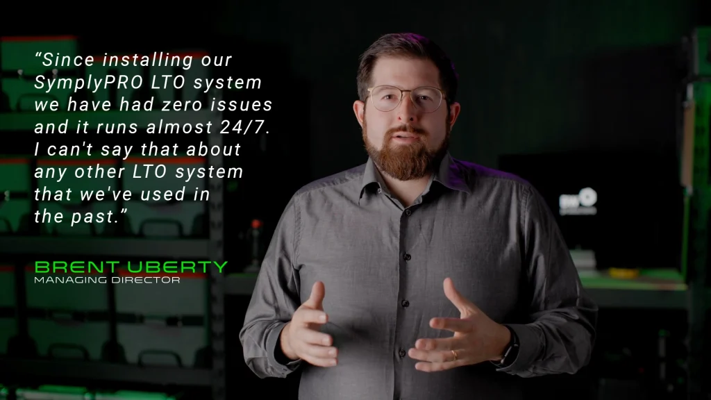 “Since installing our SymplyPRO LTO system we have had zero issues. And our system runs almost 24/7 with the sheer amount of data that we’re going through,” adds Brent. “I can’t say that about any other LTO system that we’ve used in the past.” Brent feels that a lot of this comes from the build quality of the hardware and Symply’s attention to detail in developing a platform from the ground up. “Reliability, usability, and upgradeability are all really important things to us when we’re looking at expanding our equipment. Symply provided the right needs from an equipment perspective, and we’ve been so happy with it overall.”