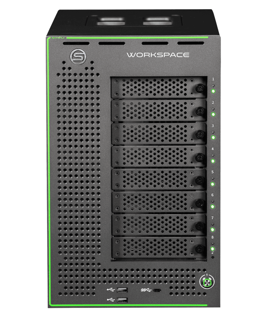 With options for RAID 5 or RAID 6 to ensure data protection, hot-swap disk modules, enterprise-grade hard drives and Flash drives, optional hot-swappable redundant SSD for the OS and software apps, WORKSPACE XE is highly resilient – just as you would expect from a Symply product.
