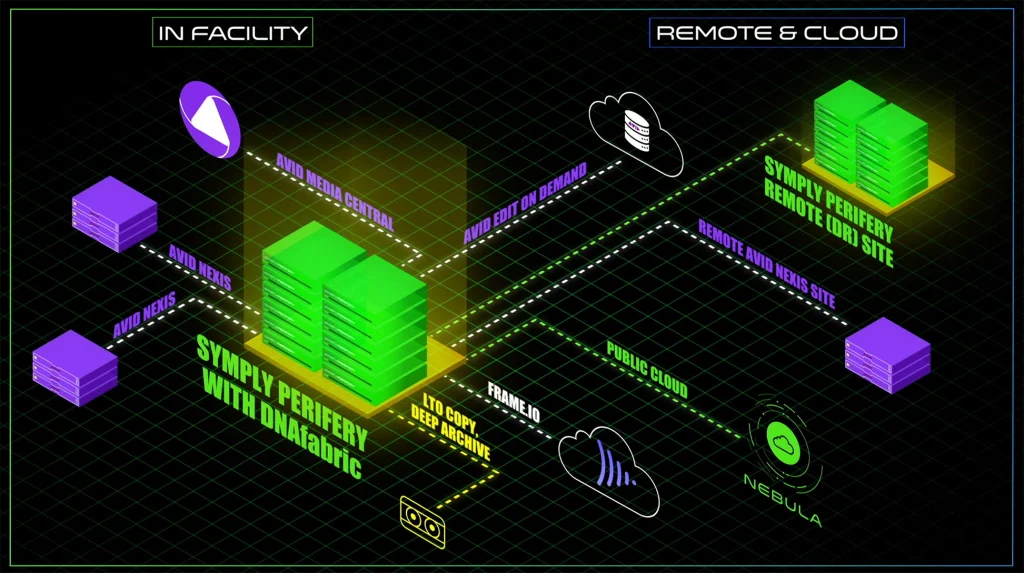 In today’s data-driven world, content is the lifeblood of the Sports, Media & Entertainment industries. Growing amounts of content is being created in studios and remote locations, with media professionals utilizing Avid shared storage adding to this. Production and post-production is often split between facilities and with dispersed workers, who need to retain media assets for the long term while maintaining fast, frequent access. The combination of SymplyPERIFERY and DNAfabric allows companies to efficiently secure content from disaster, whether that be from malicious attack, data corruption, storage system failures, or accidental deletion, whilst still providing a highly resilient long-term media archive, to store valuable content for the purposes of monetization and distribution, that is cost predictable and easy to access at any time.