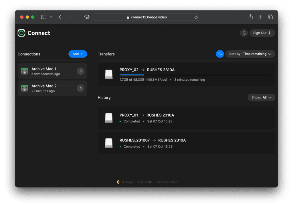By introducing Connect, Hedge ensures that users are no longer tethered to their workstations during transfers. This feature allows users to monitor LTO transfers remotely, providing peace of mind and a frictionless experience.